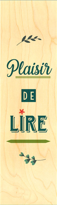 marque-page en érable massif illustré des mots "plaisir de lire" en caractères divers et originaux